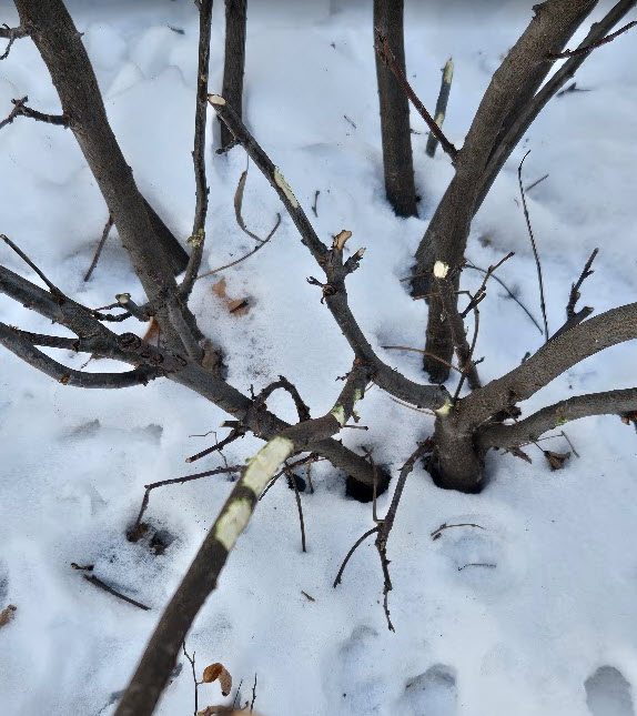 So what’s the lesson? The first is that there’s more than one lesson. The second lesson is that, in spite of “rabbit resistance’, a hungry rabbit will eat whatever they can. The third lesson is that small shrubs, resistant or not, should be protected with hardware cloth. The fourth lesson is that we cannot cover all the bases when preparing for winter. For example, I don’t believe there were any meteorologists saying that the cold stretch of Winter 2025/26 would be so brutal.